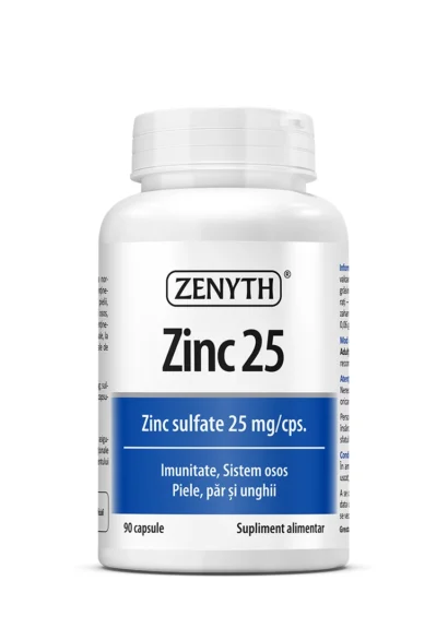 Zinc 25 mg, zinc sulfate for immune support and antioxidant protection. Helps maintain healthy skin, hair, and nails. 90 capsules.