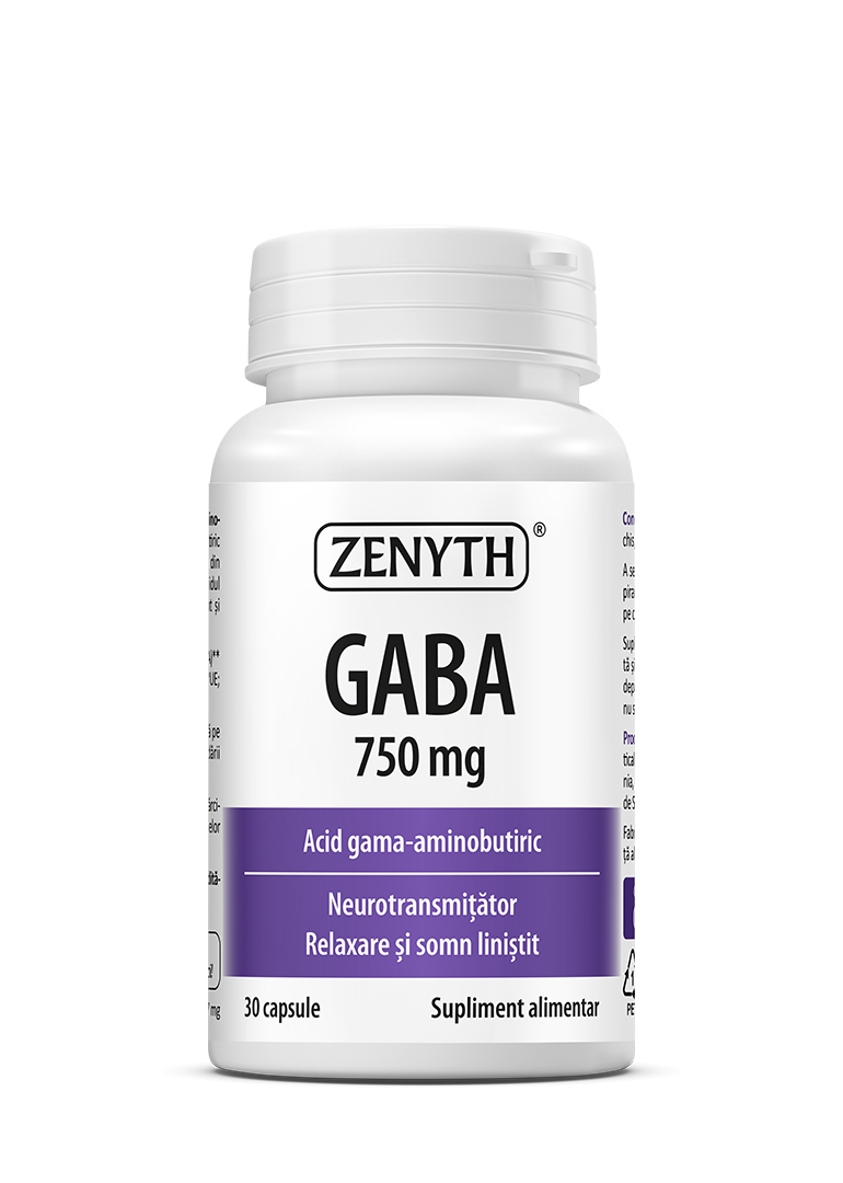 GABA 750 mg, 100% gamma-aminobutyric acid, reduces stress, supports relaxation, and improves sleep. 30 capsules.