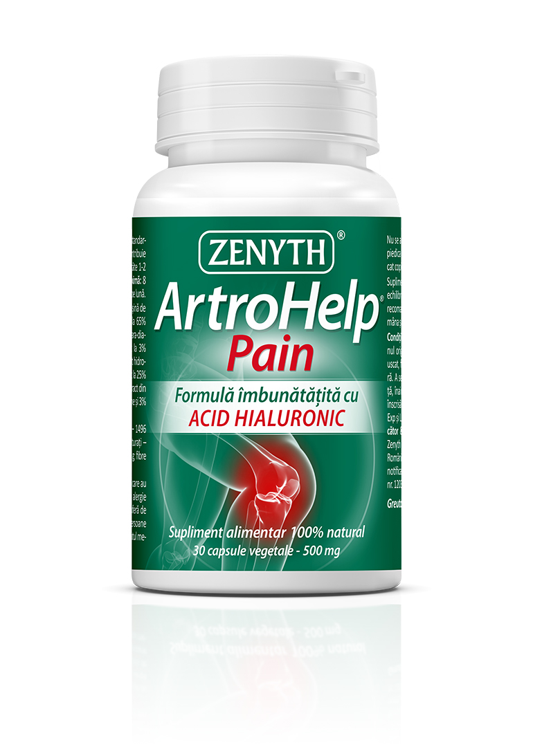 ArtroHelp Pain is a natural formula designed to support joint mobility and comfort. The standardized extracts included in the formula (Boswellia, Harpagophytum, Willow bark, Rhodiola) help support the body’s natural response during inflammatory states by helping regulate certain pathways involved in inflammation. The ArtroHelp Pain formula is enhanced with HYALURONIC ACID, an excellent joint lubricant that helps maintain flexibility and ease of movement.