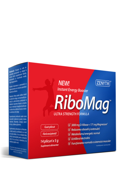 RiboMag, ultra-powerful formula with D-ribose and magnesium pidolate for physical and mental energy. Fast-acting. 14 sachets x 5 g.