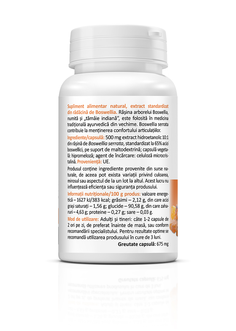 Boswellia is a food supplement made from a standardized extract of Boswellia serrata resin. Also known as Indian frankincense, Boswellia serrata has been used in traditional Ayurvedic medicine for joint and muscle pain, back pain, neuralgia, headaches, trauma, and chronic rheumatism.