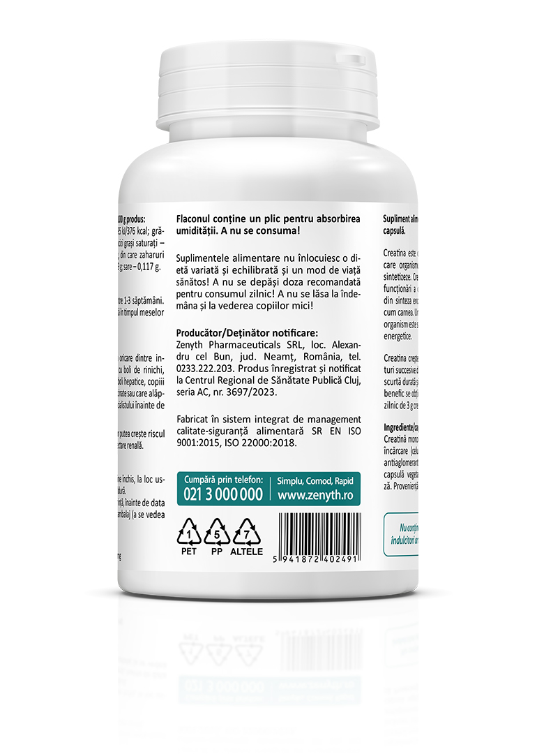Manufacturer / Notification Holder: Zenyth Pharmaceuticals SRL, Alexandru cel Bun, Neamț County, Romania. Product registered and notified at the Cluj Regional Center for Public Health, series AC, no. 3697/2023.