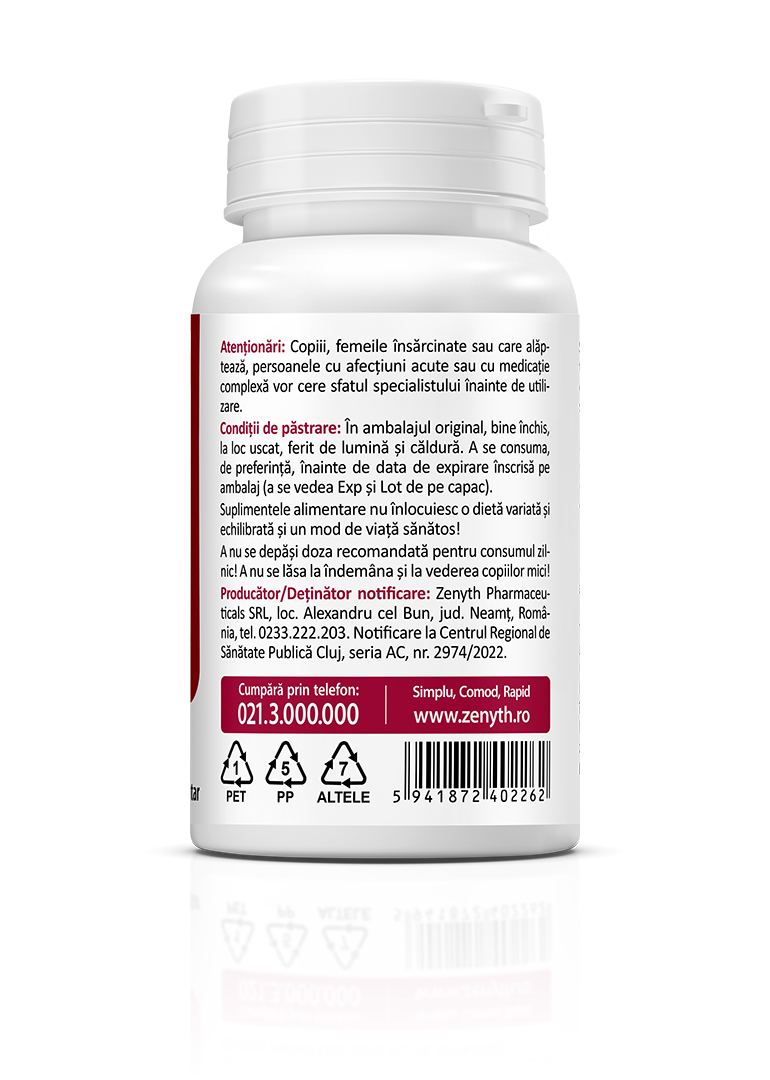 Manufacturer / Notification Holder: Zenyth Pharmaceuticals SRL, Alexandru cel Bun, Neamț County, Romania, Tel.: +40 233 222 203. Product registered and notified at the Cluj Regional Center for Public Health, series AC, no. 2974/2022.