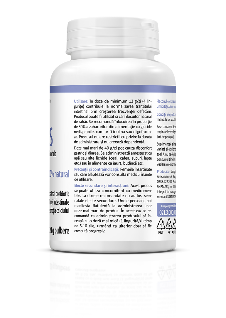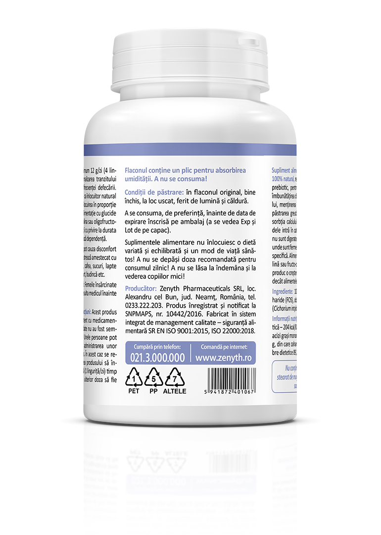 Inulin FOS is a 100% natural dietary supplement, pure inulin and fructo-oligosaccharides derived from chicory root. Inulin and fructo-oligosaccharides belong to the category of dietary fibers that are not digested and reach the colon intact, where they are fermented by the specific gut microbiota. Foods and beverages containing inulin or fructo-oligosaccharides instead of sugar lead to a lower increase in blood glucose compared to those containing sugar.