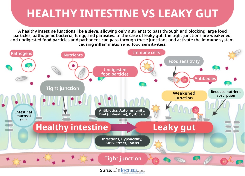 In a healthy individual, the intestinal mucosa acts like a sieve that filters harmful substances from beneficial ones, allowing only beneficial substances to enter the body. In leaky gut syndrome, the permeability of the intestinal mucosa increases, allowing proteins, bacteria, undigested food particles, and toxins to enter the body.