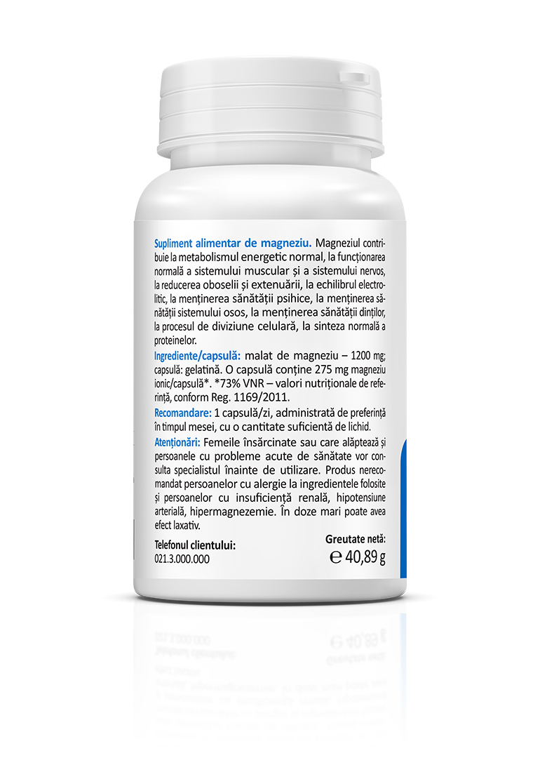 • Food supplement with 1200 mg magnesium malate per capsule.
