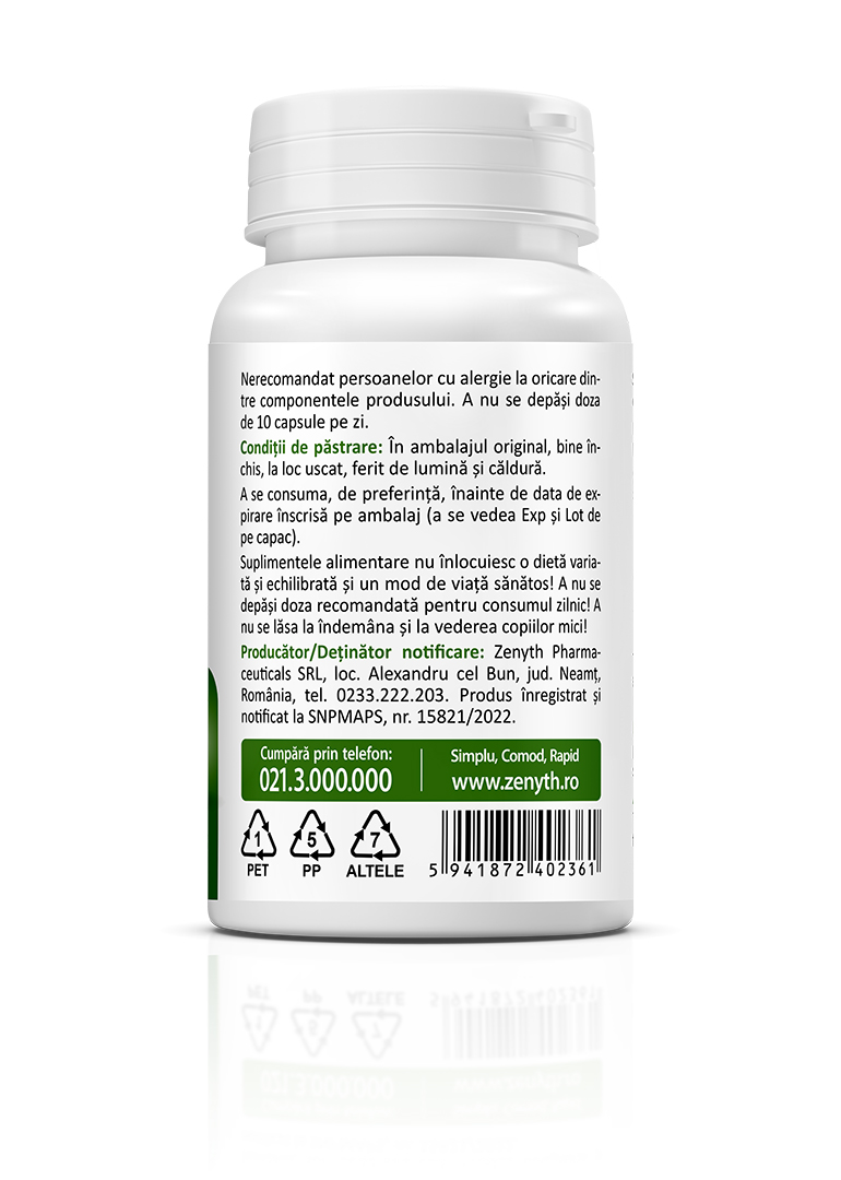Manufacturer / Notification Holder: Zenyth Pharmaceuticals SRL, Alexandru cel Bun, Neamț County, Romania, Tel: 0233.222.203. Product registered and notified at SNPMAPS no. 15821/2022.