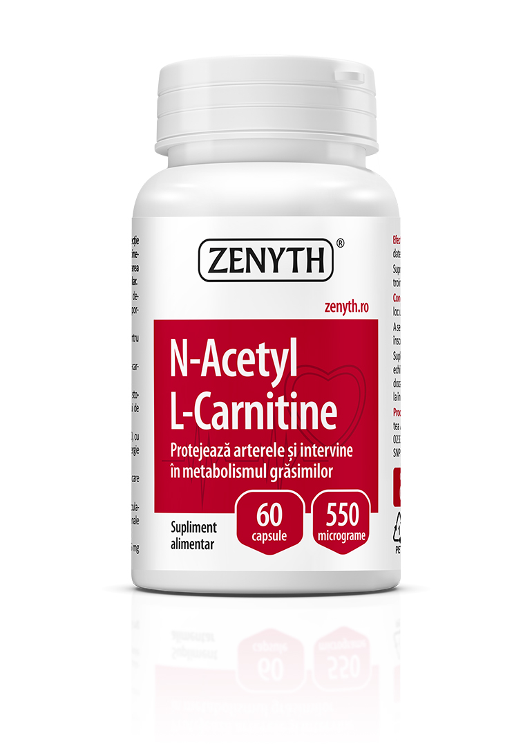 N-Acetyl L-Carnitine is a dietary supplement recommended for antioxidant protection, increased endurance, maintaining normal energy metabolism, and supporting the normal functioning of the nervous and cardiovascular systems. L-carnitine is an essential amino acid found in high concentrations in the brain, nerves, heart, liver, and sperm cells. The highest concentration of L-carnitine is found in the heart, where it is used for energy support and detoxification of the cardiac muscle. L-carnitine is also a useful adjuvant in weight-management programs, as it plays a role in fat metabolism by transporting fatty acids into the mitochondria. At the mitochondrial level, fatty acids are used to release energy (adenosine triphosphate – ATP).