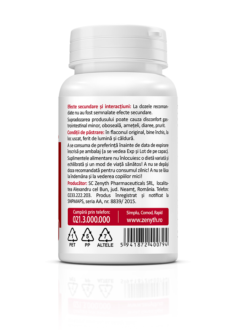 Manufacturer/Notification Holder: Zenyth Pharmaceuticals SRL, Alexandru cel Bun, Neamț County, Romania, tel. +40 233 222 203. Product registered and notified with SNPMAPS, series AA, no. 8839/2015.