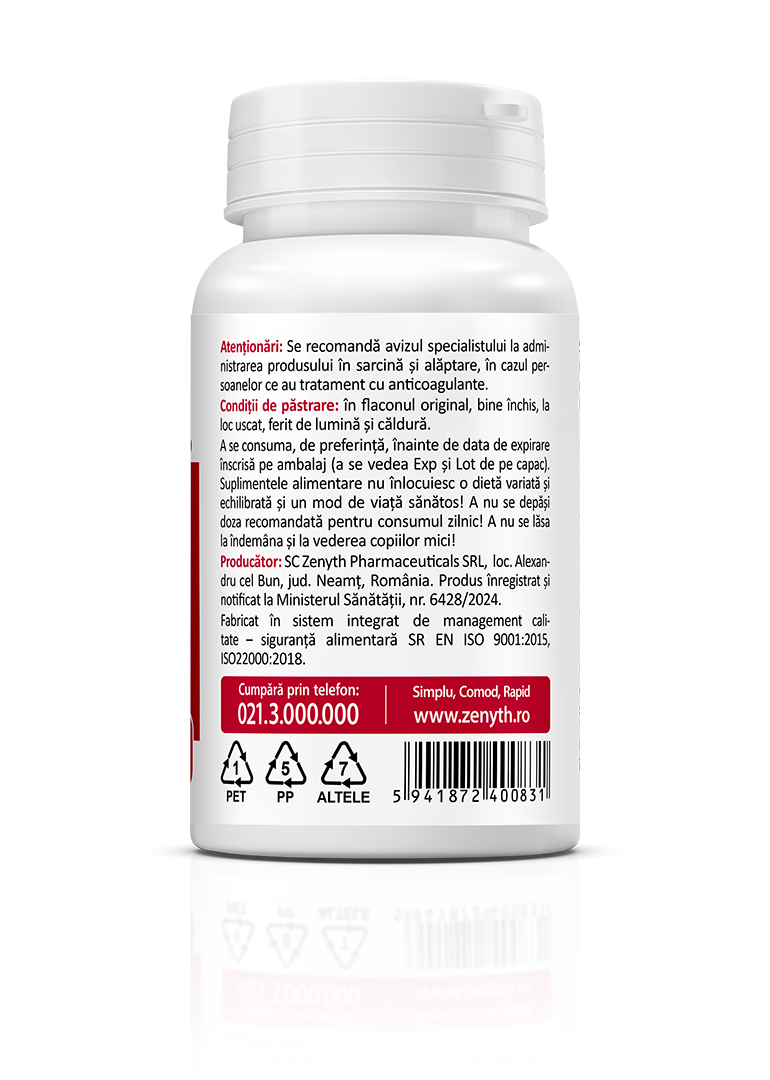 Manufacturer / Notification holder: Zenyth Pharmaceuticals SRL, Alexandru cel Bun, Neamț County, Romania, tel. +40 233 222 203. Product registered and notified with the Ministry of Health, no. 6428/2024.