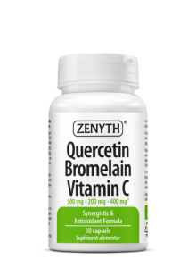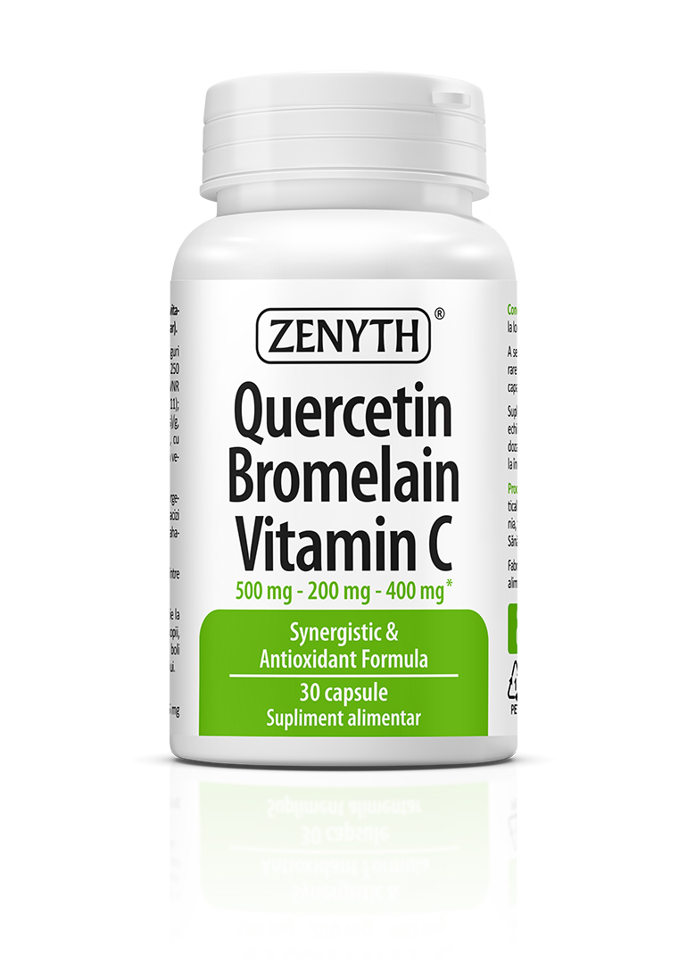 Quercetin Bromelain Vitamin C is an innovative, synergistic formula recommended for antioxidant protection, allergy management, and supporting immunity, as well as preventing and managing respiratory viral infections. The supplement’s concept is based on the antioxidant, immunomodulatory, and antihistamine effects of quercetin, combined with the anti-inflammatory properties of bromelain and the well-known “immunity vitamin,” vitamin C.