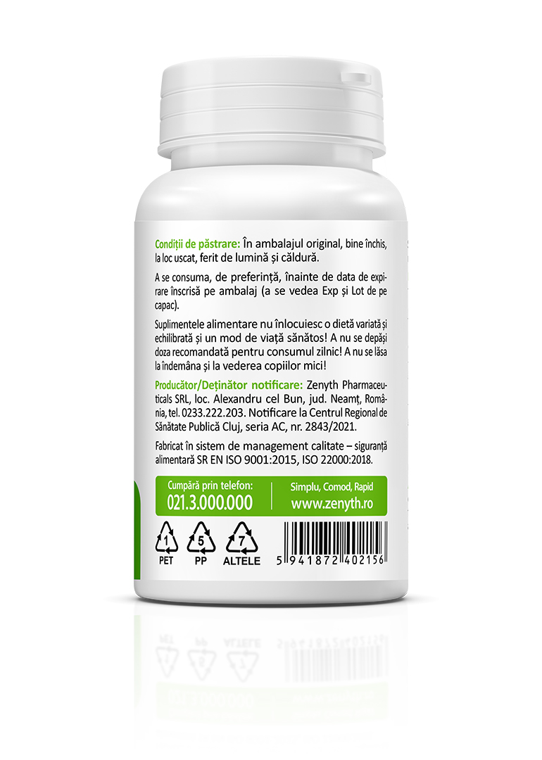 Manufacturer / Notification Holder: Zenyth Pharmaceuticals SRL, Alexandru cel Bun, Neamț County, Romania, Tel.: +40 233 222 203. Product registered and notified at Regional Public Health Center Cluj, seria AC, nr. 2843/2021.