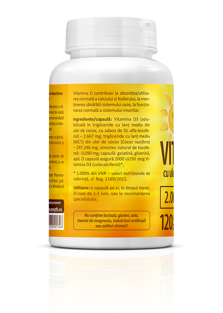 • One capsule contains 2000 IU vitamin D3.