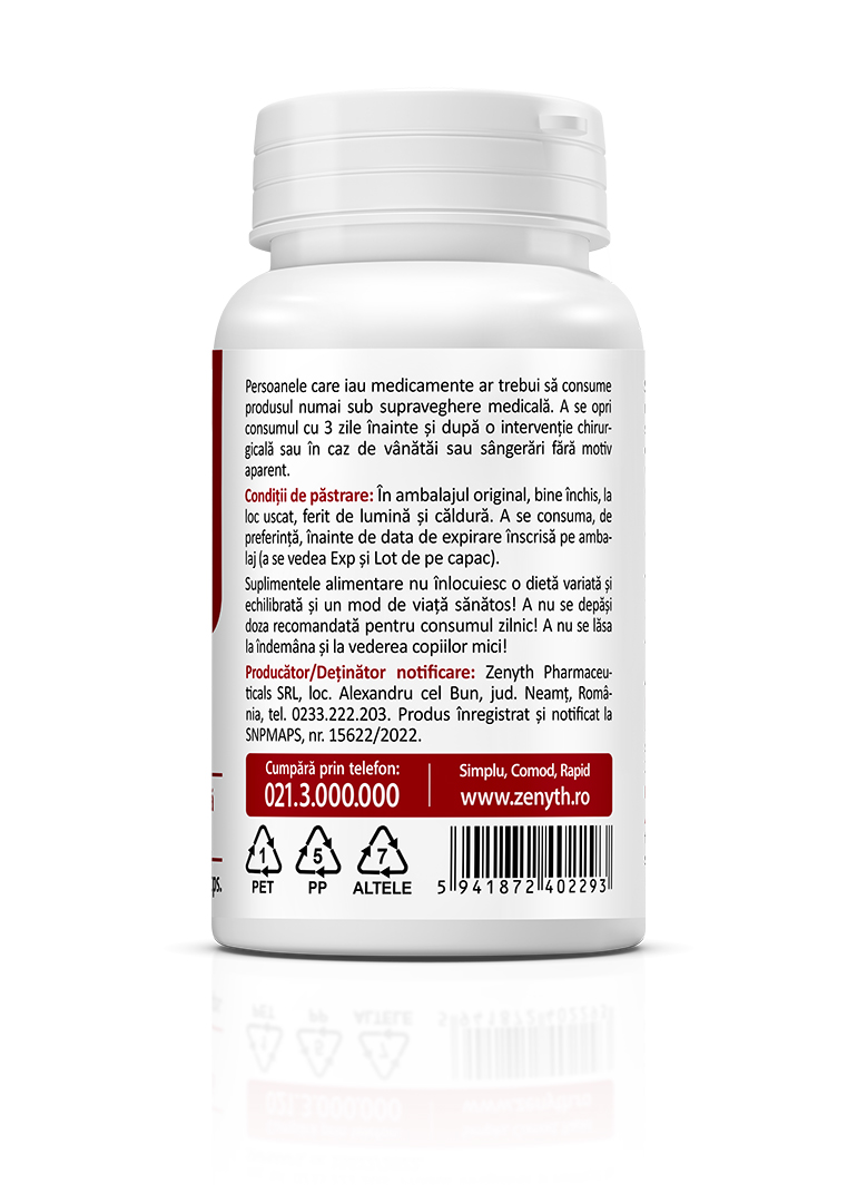 Manufacturer/Notification holder: Zenyth Pharmaceuticals SRL, Alexandru cel Bun, Neamț County, Romania, tel. 0233.222.203. Product registered and notified with SNPMAPS, no. 15622/2022.