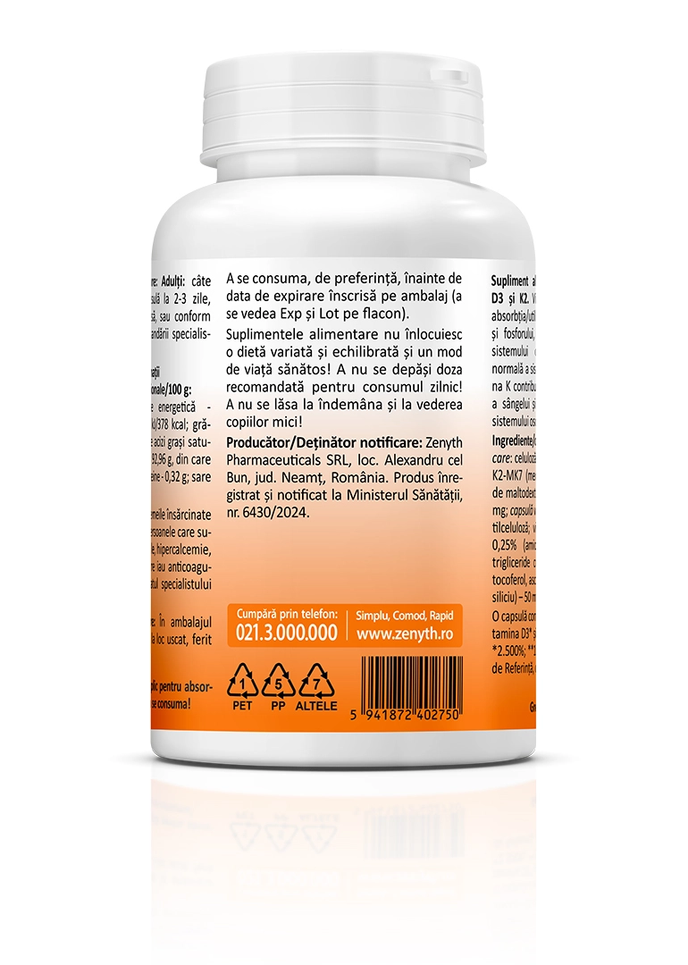 Manufacturer/Notification Holder: Zenyth Pharmaceuticals SRL, Alexandru cel Bun, Neamț County, Romania, tel: 0233.222.203. Notification with the Ministry of Health no. 6430/2024