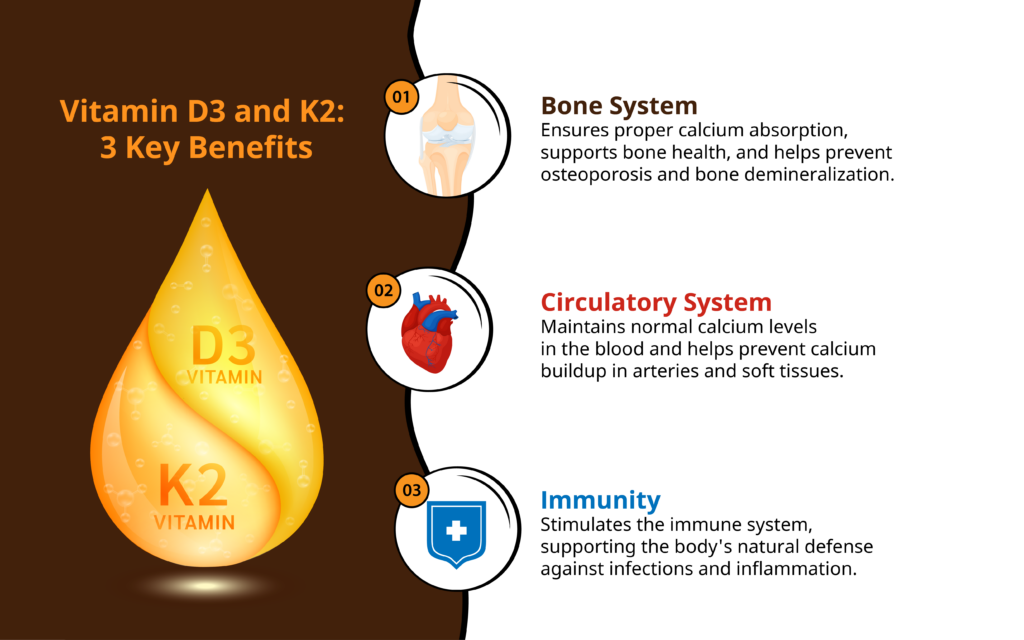 Discover how the unique combination of vitamins D3 and K2 can boost your overall health! This formula is more than just a mix of nutrients – it’s a comprehensive solution for improving your bone, immune, and cardiovascular systems.